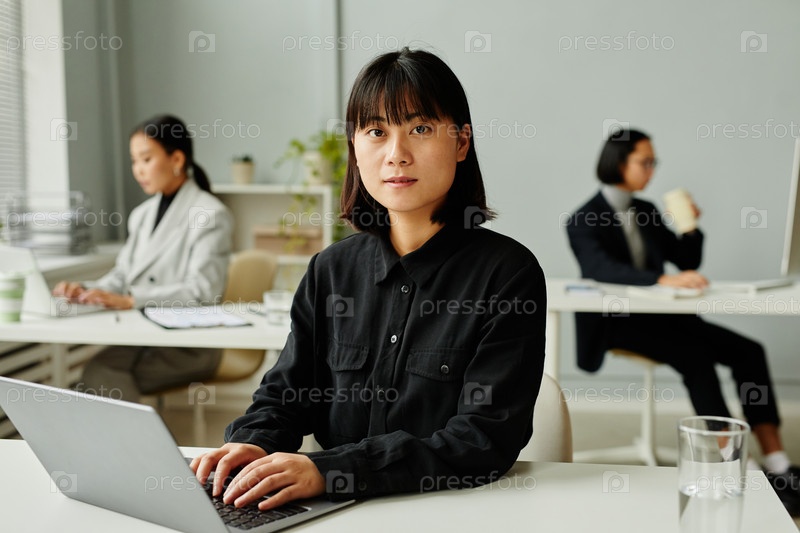 Портрет молодой азиатской женщины за рабочим столом