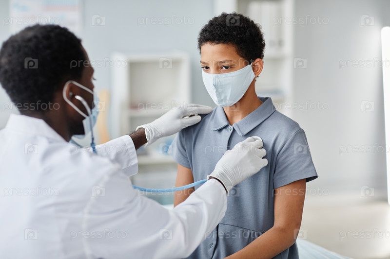 Афроамериканская девушка, посещающая врача