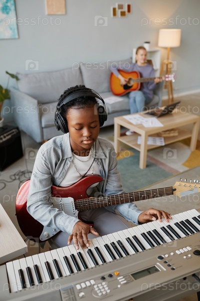 Юный чернокожий музыкант поет