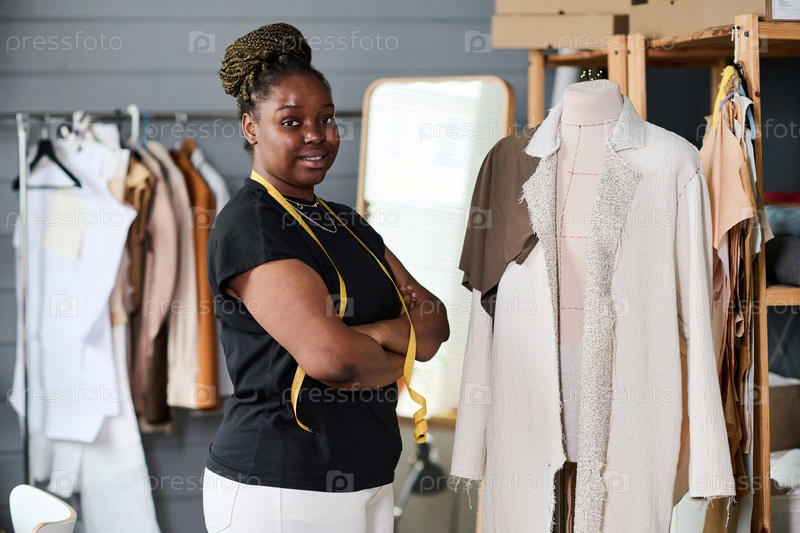 Молодая успешная афроамериканская швейщица или портной, подчиненный манекену