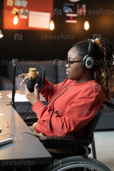 Женщина с инвалидностью готовится к онлайн-трансляции