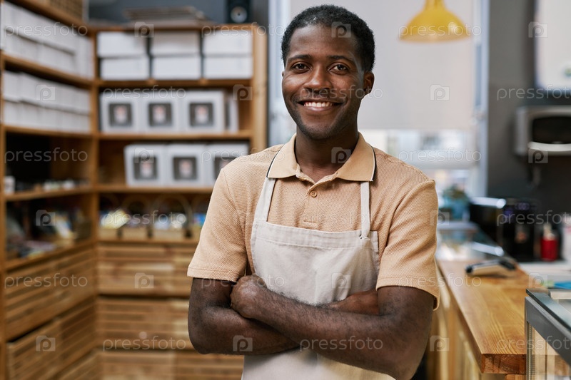 Позитивный чернокожий пекарни работник