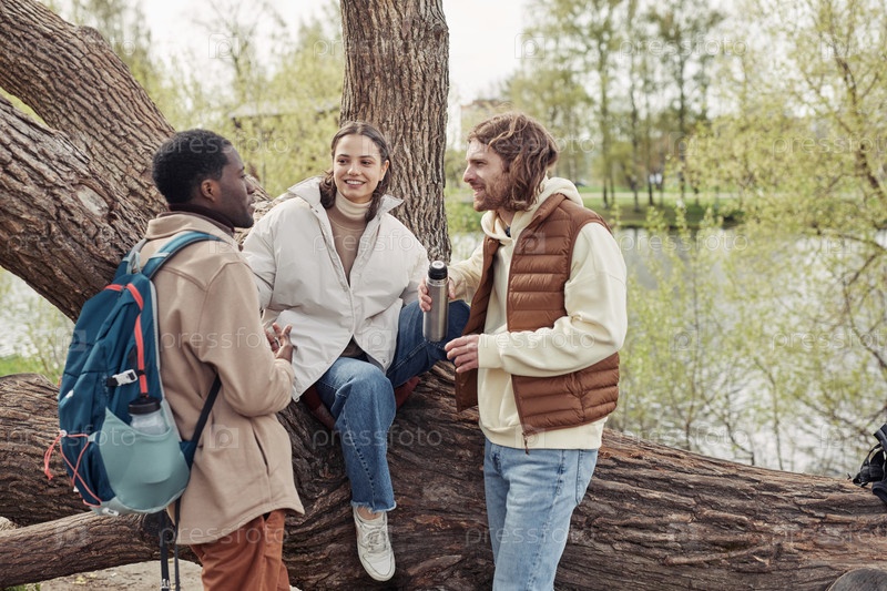 Друзья сидят на пикнике в парке