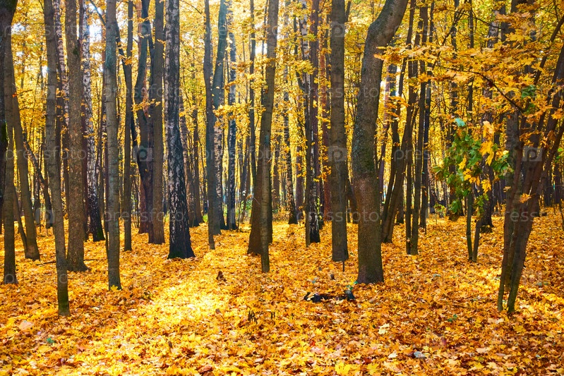 Деревья и желтые опавшие листья