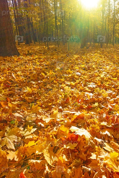 Деревья и желтые опавшие листья
