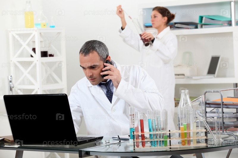 Пара ученых проводит эксперимент