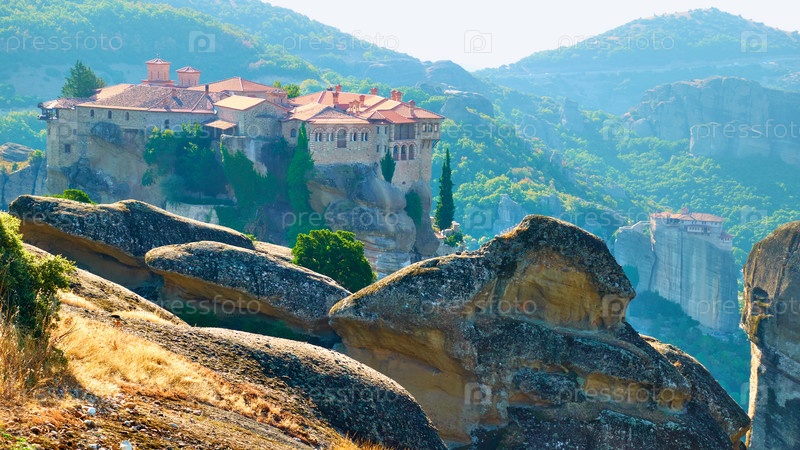 Вид на Метеоры с монастырем Варлаама