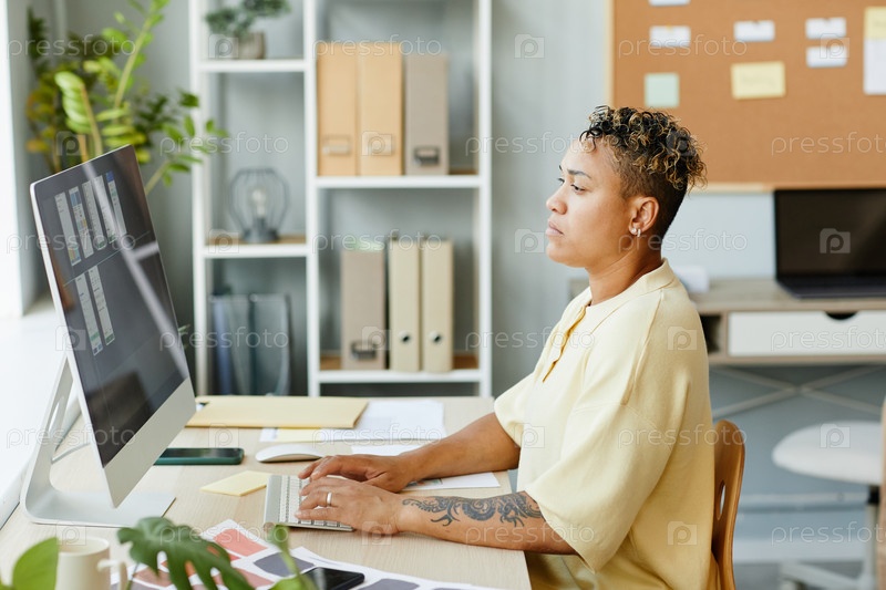 Черная молодая женщина как разработчик мобильных приложений