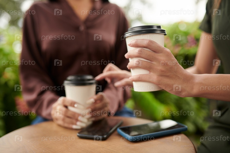 Друзья, пьющие кофе на свежем воздухе