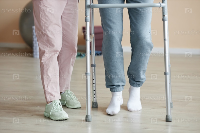 Пациент учится ходить с помощью ходунка