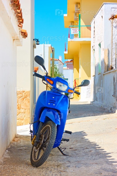 Улица с припаркованным скутером на острове Эгина