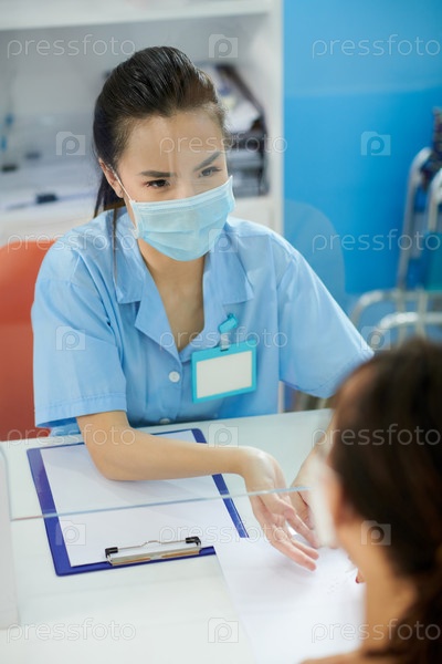 Медсестра дает форму пациенту