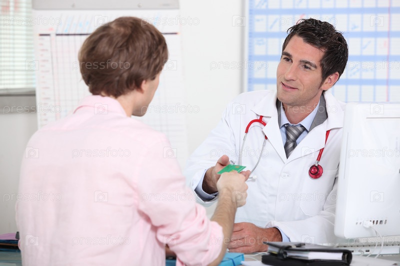 Пациент вручает карточку врачу