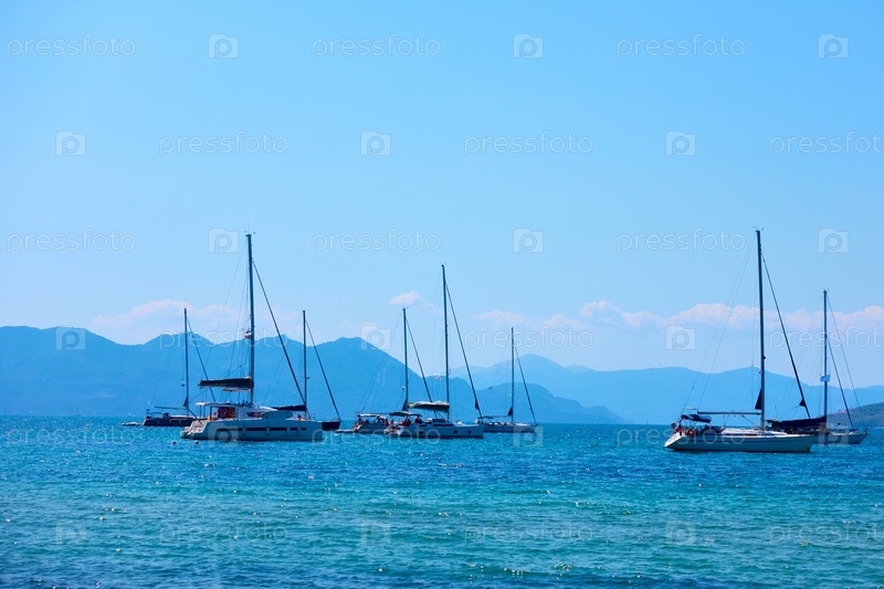 Парусные яхты в море возле острова Эгина