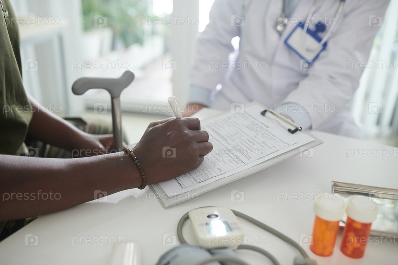 Пациент заполняет форму медицинского страхования
