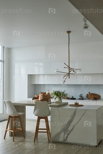 Современная белая кухня с столом