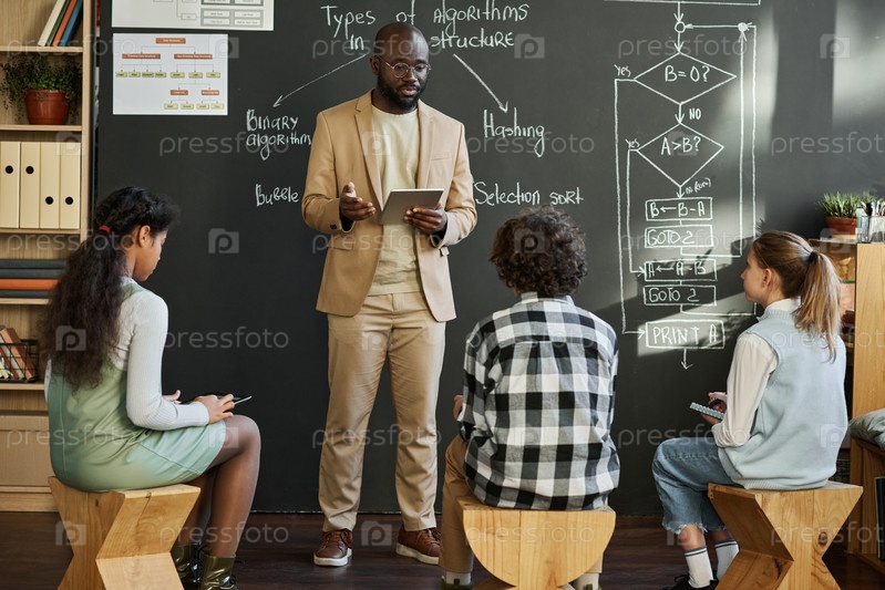 Учитель читает лекцию детям