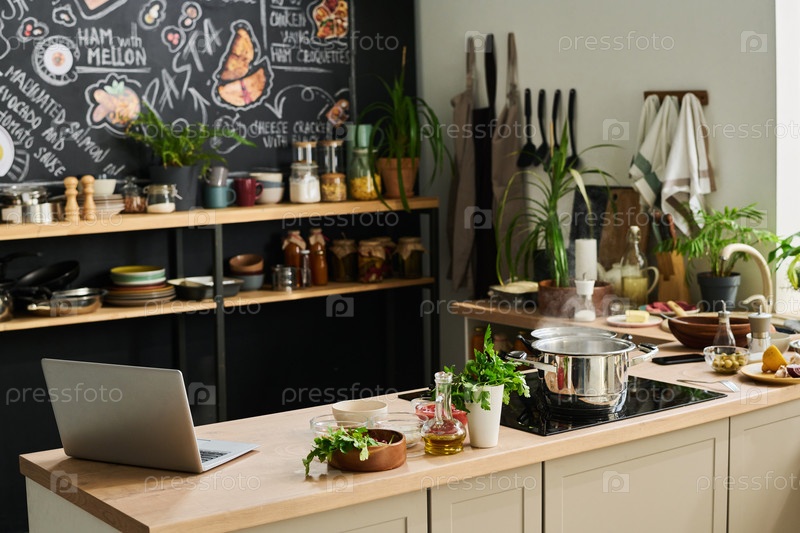 Дизайн интерьера кухни на чердаке с едой