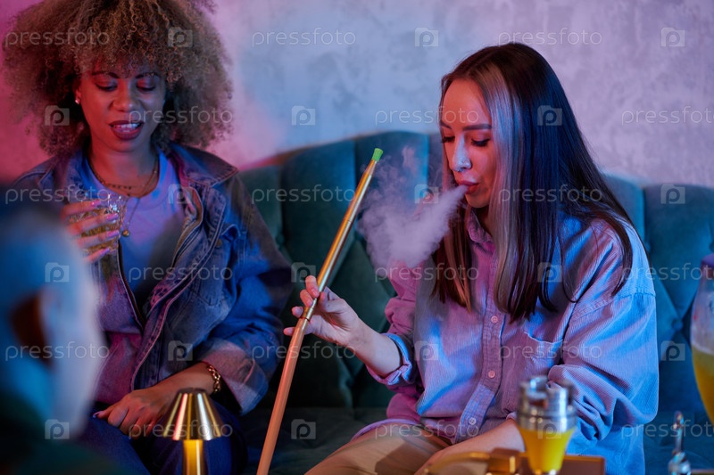 Женщина, курящая кальян на вечеринке