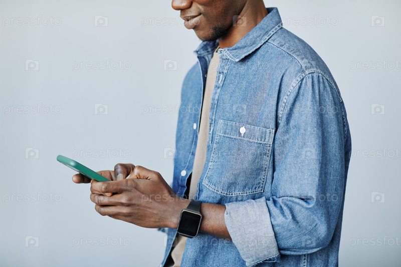 Мужчина, использующий смартфон Минимальный черный
