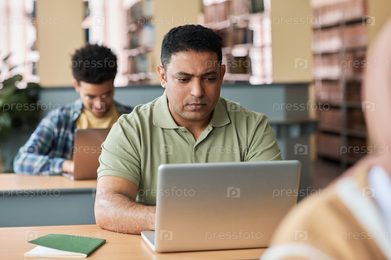 Взрослый ученик использует ноутбук на уроке