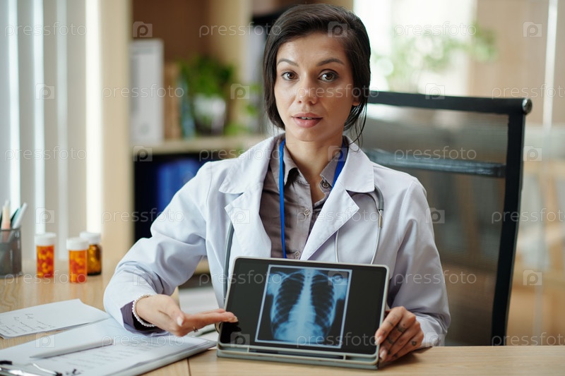 Радиолог показывает рентген грудной клетки