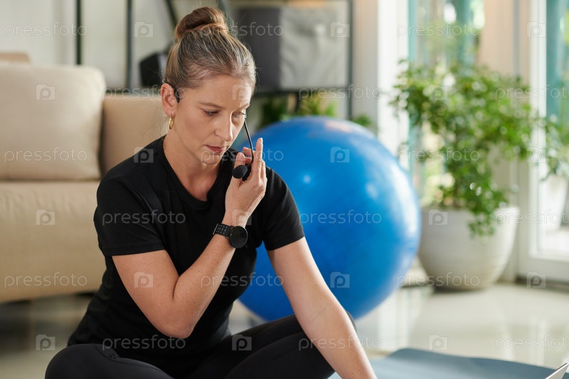 Фитнес-блогер проверяет новый микрофон