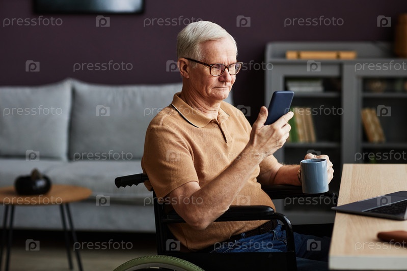 Пожилой мужчина использует смартфон для чтения