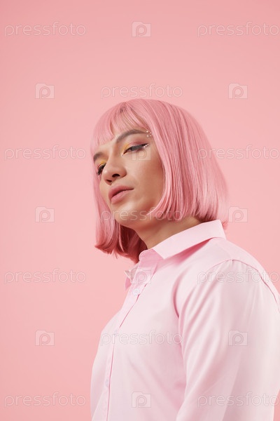 Молодой человек с розовым париком