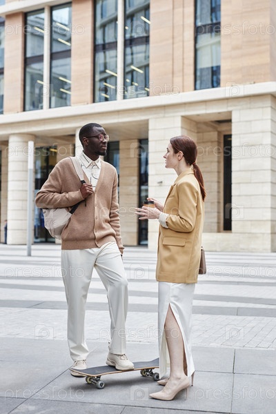 Молодые межкультурные коллеги в формальной одежде выступают против современного строительства