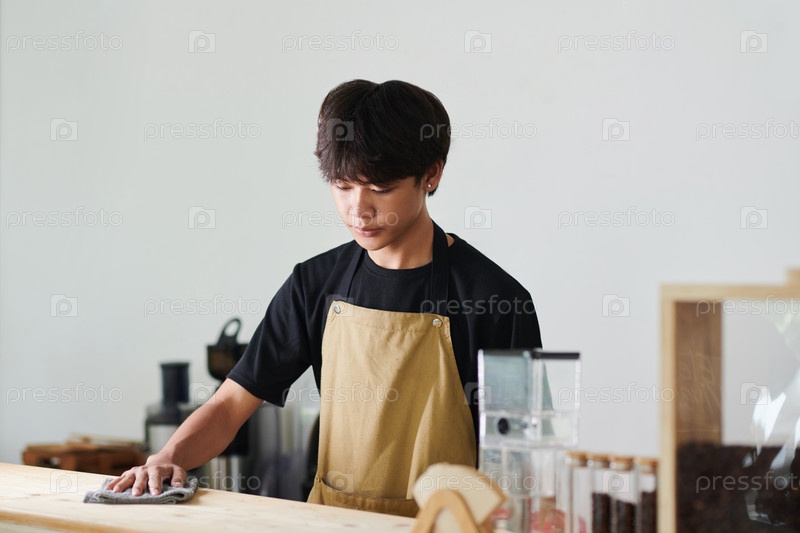 Барриста убирает прилавок