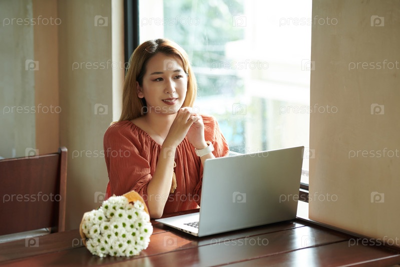 Женщина, работающая за столом в кофейне