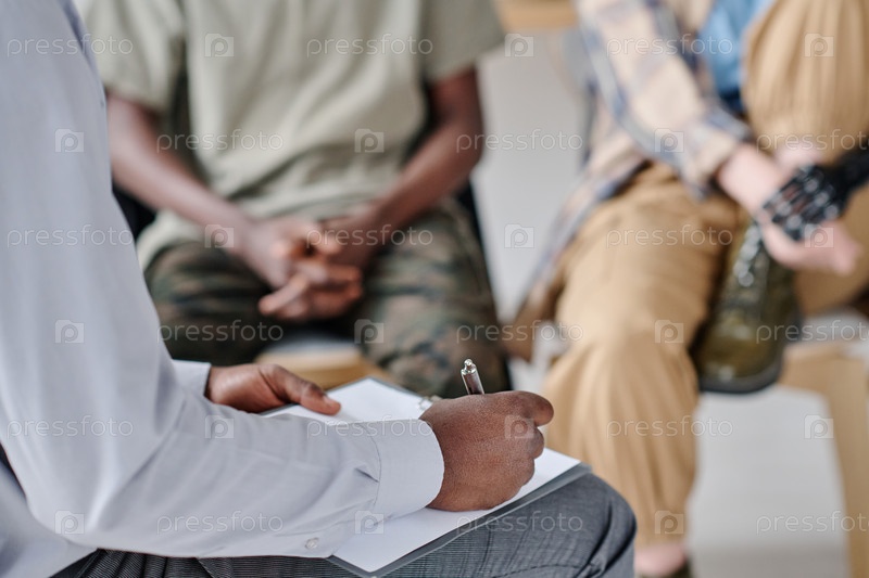 Психотерапевт делает заметки во время сеанса