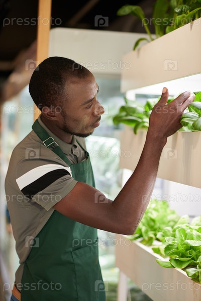Работник магазина проверяет салат