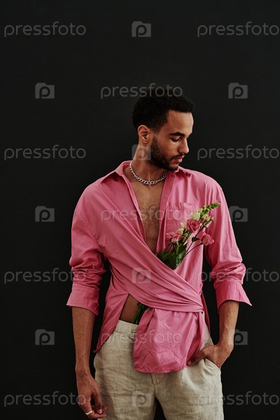 Ухоженный красивый мужчина в розовой рубашке