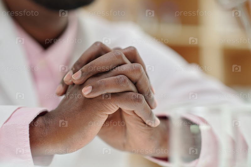 Близкий план сжатых рук молодого афроамериканского клинициста-мужчины