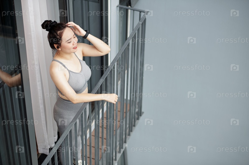 Спортивная женщина, дышащая свежим воздухом