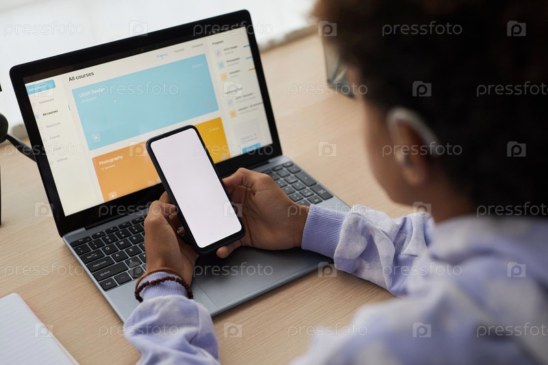 Ближайший снимок смартфона с пустым экраном, который держит подросток