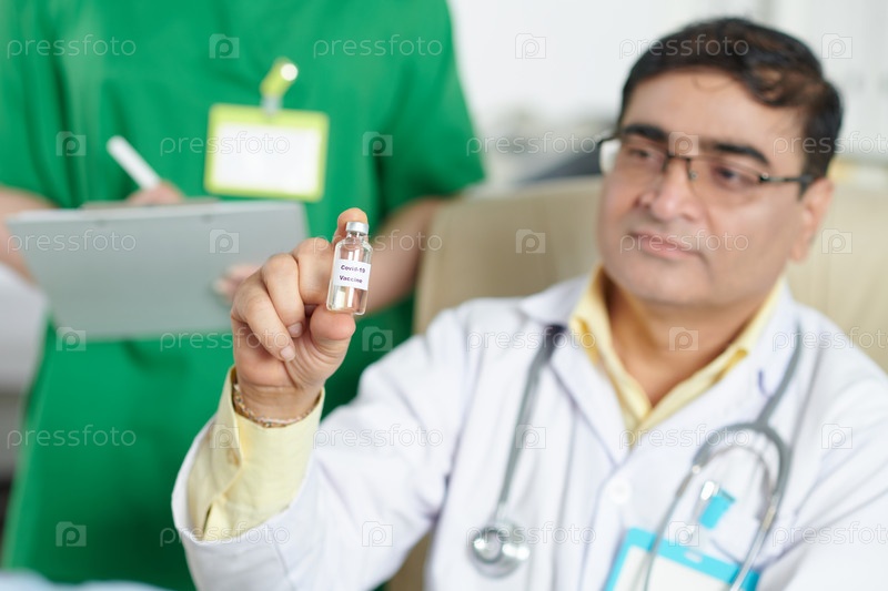Practitr Holding Vial With Vaccine Практикуйте держать флакон с вакциной