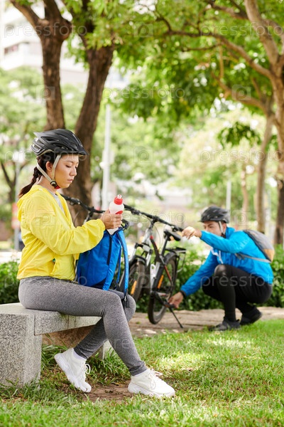 Велосипедисты с перерывом после езды