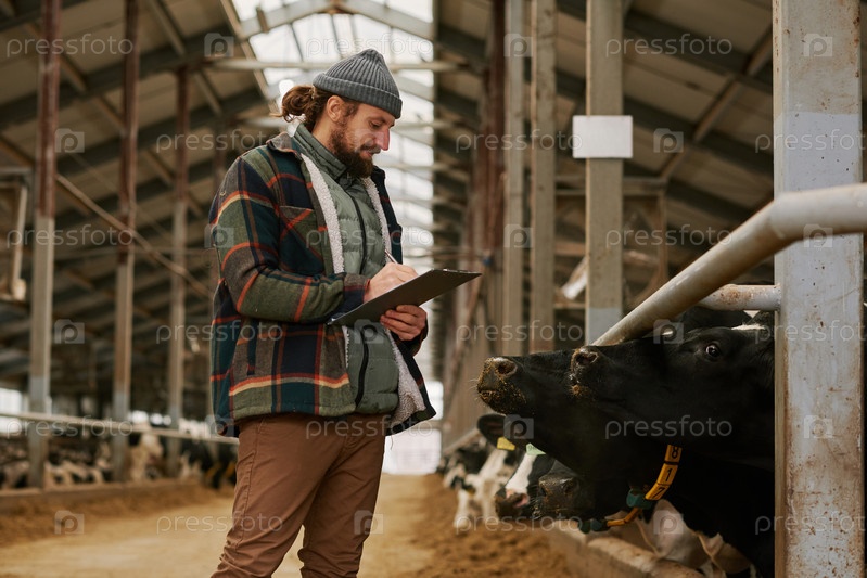 Фермер вводит данные о коровах в документ