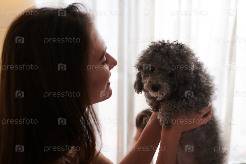 Женщина-владелец держит собаку
