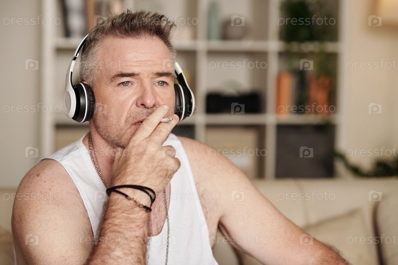 Мужчина средних лет курит сигарету