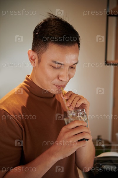 Человек, пьющий вкусный смузи