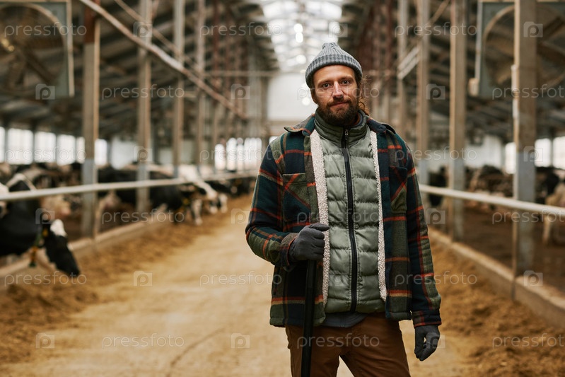 Фермер заботится о скоте домашних животных