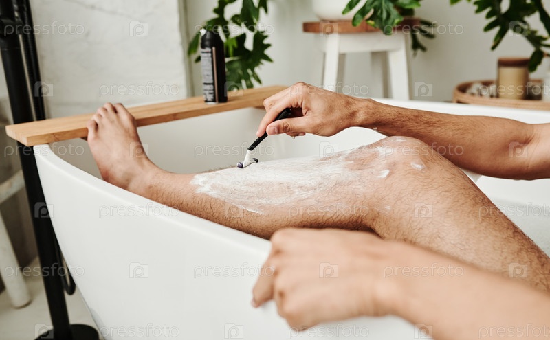Мужчина брит ногу в ванной