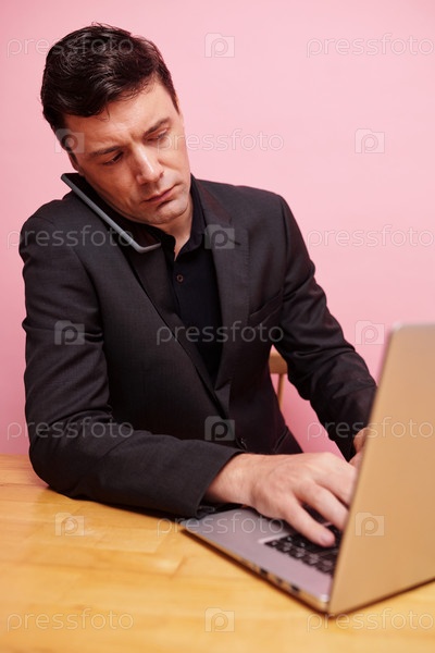 Серьезный бизнесмен, работающий на ноутбуке