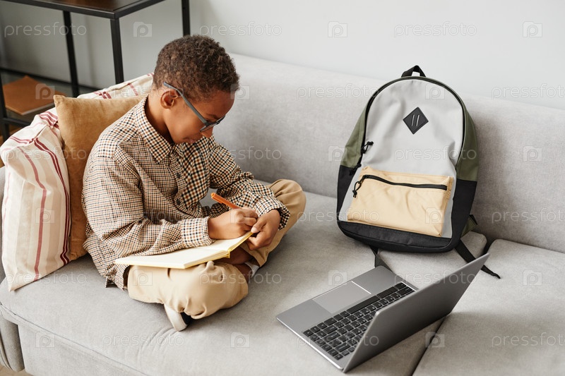 Афроамериканский мальчик учится онлайн