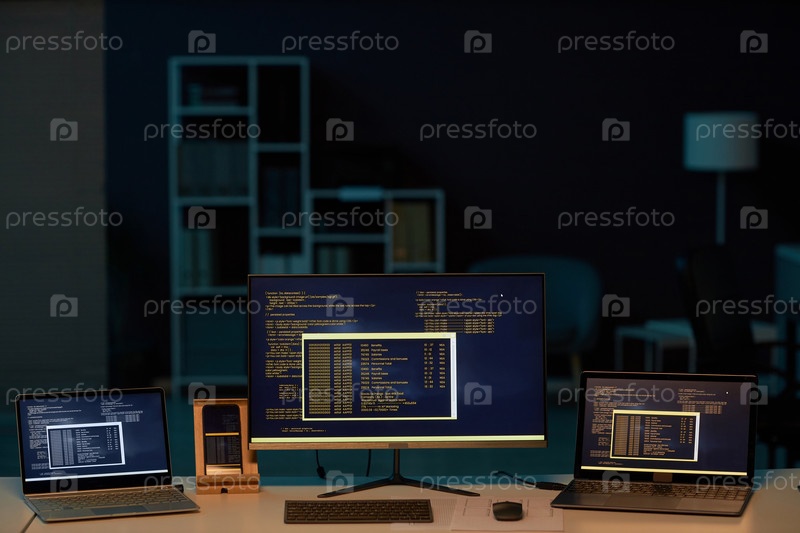 ИТ-офис с компьютерами с темными кодами