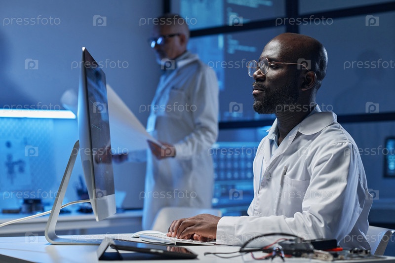 Инженер, работающий на компьютере в офисе
